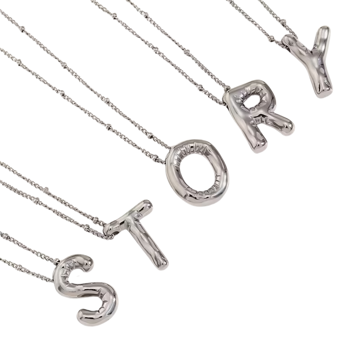 Introducing the Bubble Letter Necklace in high-shine Silver—because your name deserves to be front and center, big, bold, and impossible to ignore. Subtlety is overrated; confidence is a statement piece.