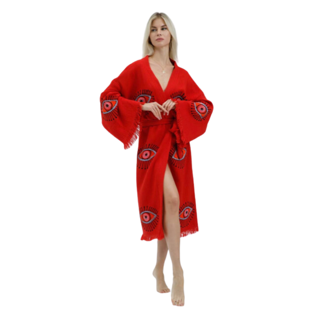 These beautiful Gia Maloe organic handwoven Turkish robes will become a staple in your wardrobe! Whether lounging at home or going out on the town, they are a striking addition to your outfit.